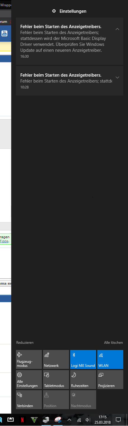 und Wechsel in den Sperrbildschirm) wird mir ein Anzeigetreiberfehler